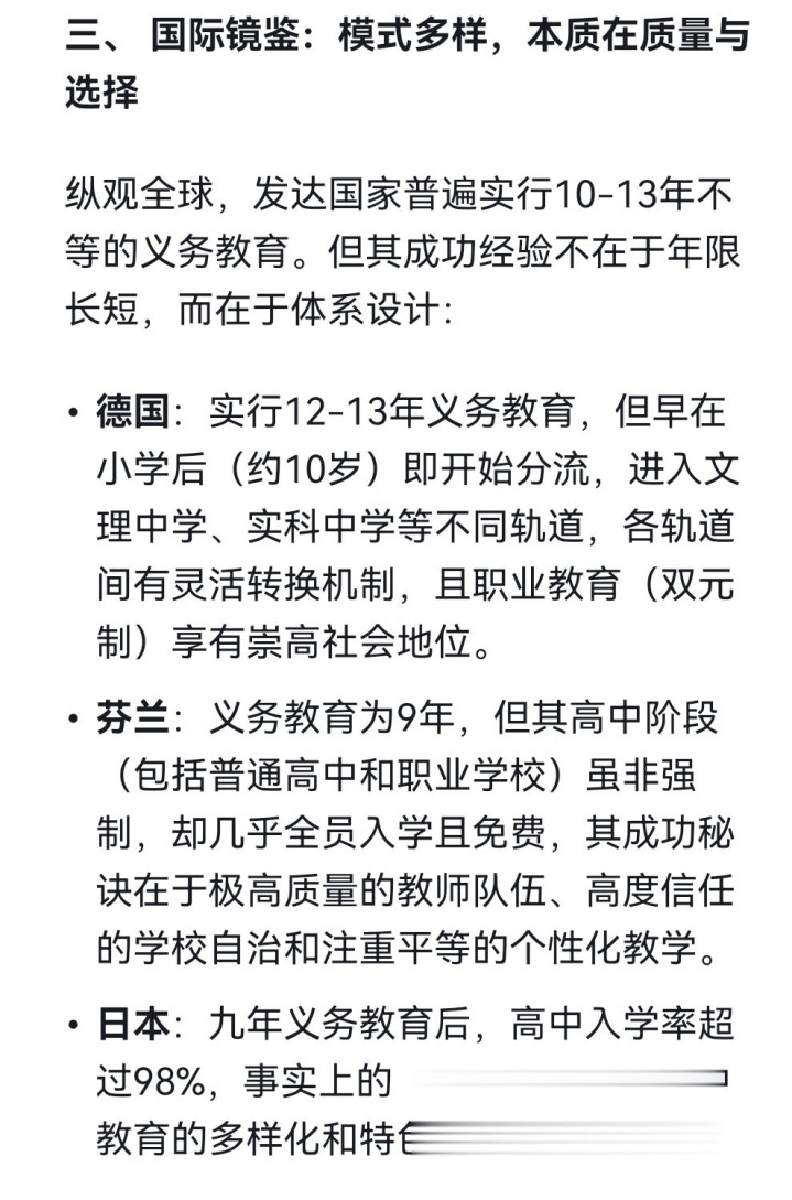 · 德国:抓行12-13年义务西席,但早在小学后(约10岁)即初始分流,插足文理中学、实科中学等不同轨说念,各轨说念间有活泼退换机制,且职业西席(双元制)享有高尚社会地位。