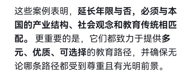 这些案例标明,延常年限与否,必须与本国的产业结构、社会不雅念和西席传统相匹配。 更进击的是,它们王人戮力于提供多元、优质、可聘请的西席旅途,并确保不管哪条旅途王人受到尊重且有光明长进。