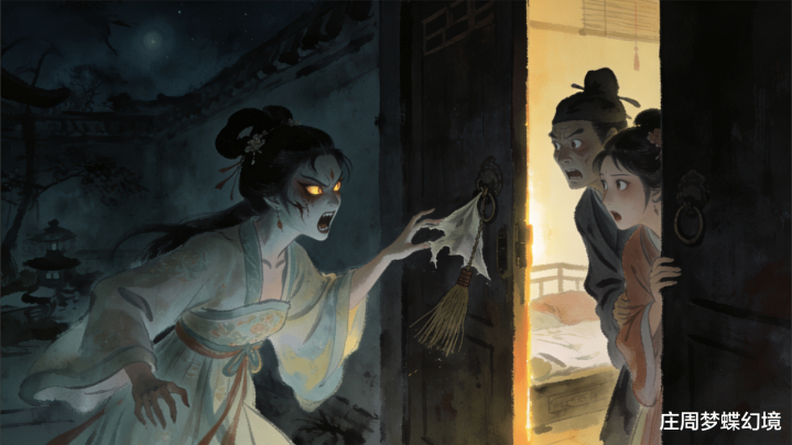 王生拿着蝇拂,胆战心寒地回了家,那处还敢进书斋,直接躲进了内室,把蝇拂紧紧挂在门上。到了一更天傍边,门外骤然传来 “沙沙” 的声响,王生吓得不敢去看,让太太陈氏去瞧瞧。