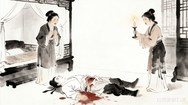 等他回到书斋门口,却发现门从内部反锁了,推都推不开。一股不详的猜想涌上心头,他绕到后院,翻墙进了院子,只见密室的门也关得死死的。他踮着脚,从窗户缝里往里偷看 —— 这一眼,差点把他魂吓飞!