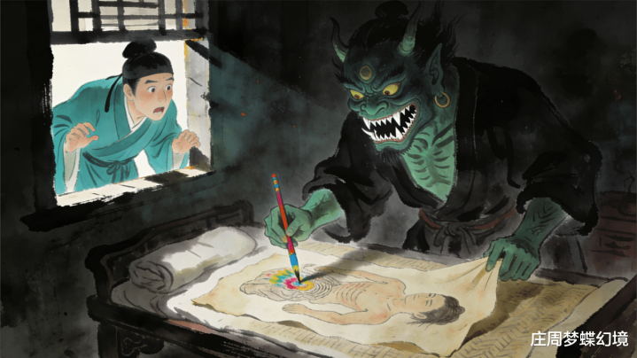 屋里那处还有什么绝色密斯,只见一个怒容满面的恶鬼,牙齿横暴得像锯子,正把一张东谈主皮铺在床榻上,手里拿着彩笔细细描写。画完之后,恶鬼把笔一扔,握起东谈主皮抖了抖,像穿一稔似的套在身上,片时代又变回了阿谁楚楚悯恻的密斯表情。